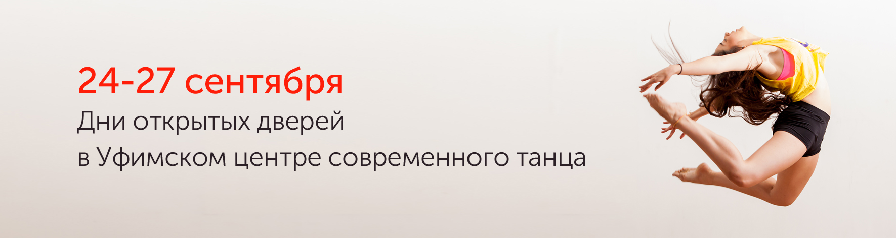24-27 сентября мы приглашаем всех желающих посетить открытые (бесплатные) уроки по таким направлениям как: contemporary dance, джаз-модерн, классический танец, hip-hop, break-dance, dancehall и комплексная программа для детей от 3-х до 13 лет. Если вы хотите танцевать, но не можете определиться с направлением и школой, это мероприятие то, что вам нужно!