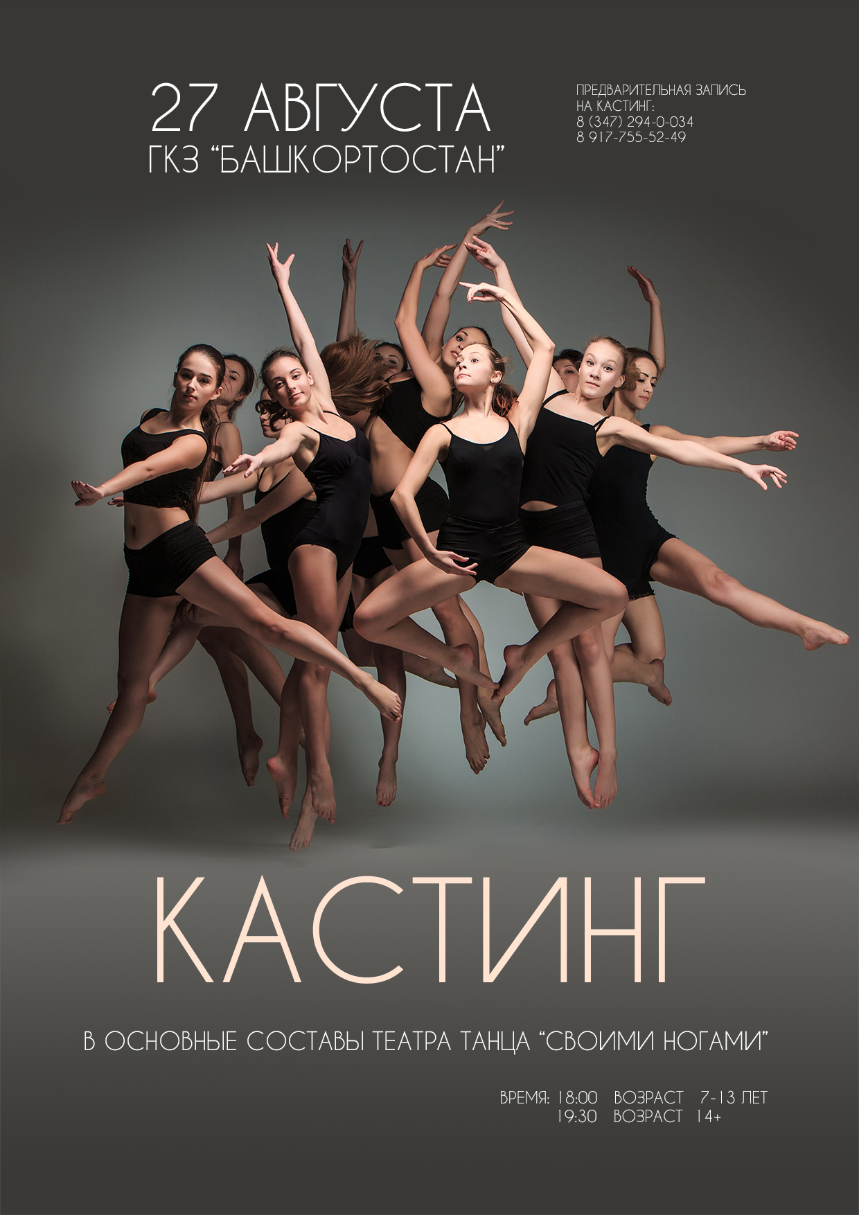 5 сентября (воскресенье) мы ждем всех желающих попасть в основные составы нашей школы на кастинг, который состоится в ГКЗ «Башкортостан» (ул. Ленина 50, вход со стороны ул. Крупской).